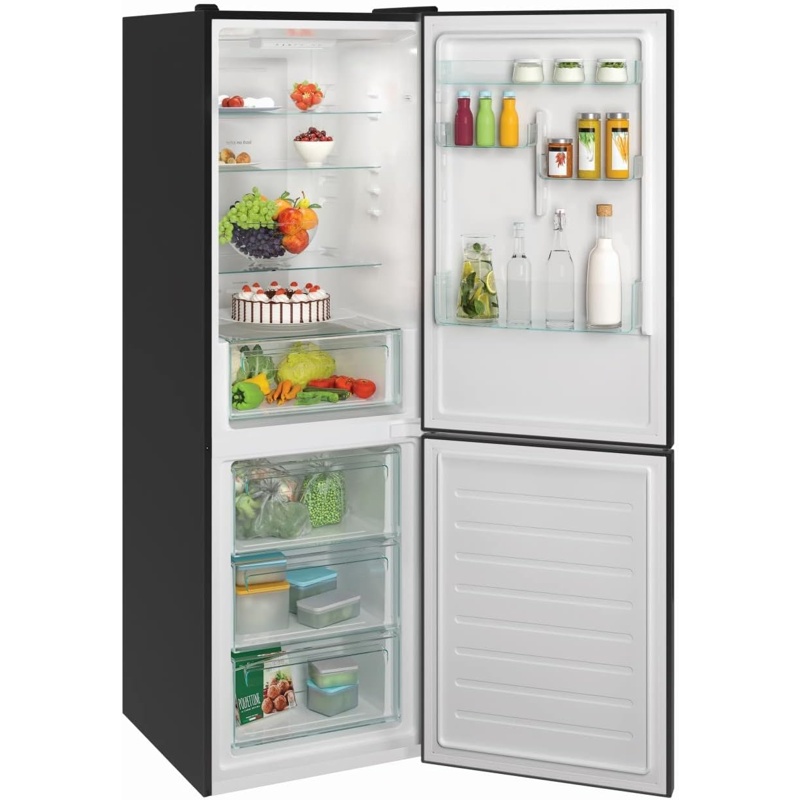 El frigorífico combinado Candy CCE3T618FB cuenta con una capacidad total de 344 litros, con un nivel de ruido de 39 dB. Este modelo presenta un diseño de 60 cm de ancho, adecuado para espacios limitados. La clasificación energética es E, lo que indica su eficiencia en el consumo de electricidad. Está equipado con un compartimento refrigerador y un congelador, lo que permite almacenar diversos alimentos de manera organizada. El sistema de refrigeración está diseñado para mantener un ambiente controlado y óptimo para la conservación de alimentos. El modelo incluye estantes regulables que permiten adaptar el espacio interno según las necesidades de almacenamiento. Además, dispone de cajones para frutas y verduras, facilitando el acceso a estos productos. La iluminación interior es LED, lo que mejora la visibilidad dentro del frigorífico. El dispositivo cuenta con controles mecánicos que permiten ajustar la temperatura de forma sencilla. También presenta un diseño de puerta reversible, que proporciona flexibilidad en la instalación. La limpieza y mantenimiento del aparato son accesibles gracias a sus características constructivas. Este frigorífico se presenta como una opción funcional para el almacenamiento de alimentos y bebidas.