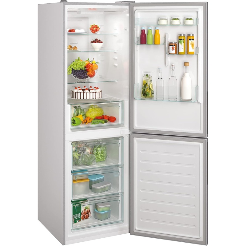 El frigorífico combinado Candy CCE3T618FS cuenta con una capacidad total de 344 litros, distribuidos en un compartimento de refrigeración y un congelador. Este modelo tiene un ancho de 60 cm. Su nivel de ruido es de 39 dB, lo que lo sitúa en una categoría de funcionamiento silencioso. La clasificación energética es de E. Incorpora estantes de vidrio en el interior, lo que permite un fácil acceso a los alimentos y facilita la limpieza. Además, el congelador está equipado con compartimentos para una mejor organización. Este frigorífico dispone de un sistema de deshielo automático en el compartimento de refrigeración. La eficiencia de su funcionamiento está optimizada para ofrecer un rendimiento adecuado dentro de los límites establecidos por las normativas de energía. Asimismo, el diseño permite una integración en diferentes espacios de almacenamiento en cocinas. El modelo también incluye una controladores de temperatura internos con opciones para ajustar el nivel de frío según las necesidades. Su construcción incluye componentes que garantizan la adecuada circulación del aire frío, lo que ayuda a mantener la temperatura en los compartimentos. Esta unidad es compatible con diversas configuraciones de instalación, siendo adecuada para diferentes tipos de hogares.