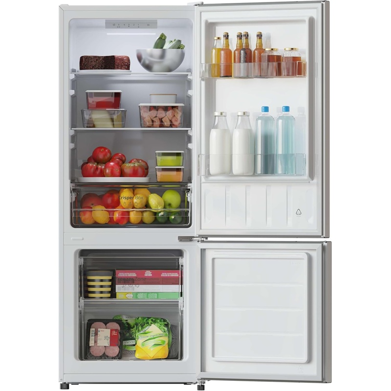 El frigorífico combinado Cecotec Combi 205 DF cuenta con un diseño de dos compartimentos, que incluye una sección de refrigeración y un congelador. Su capacidad total es de 205 litros, divididos entre 135 litros en el compartimento de refrigeración y 70 litros en el congelador. Este modelo tiene una clasificación energética de E, lo que implica un consumo moderado de electricidad. Está equipado con estantes extraíbles y ajustables, que permiten organizar los alimentos de forma ordenada. Incluye un compartimento especial para verduras y frutas, facilitando su almacenamiento. La puerta cuenta con estantes para botellas y recipientes, optimizando el espacio disponible. El sistema de refrigeración mantiene una temperatura constante, contribuyendo a la conservación de los alimentos. El mecanismo de descongelación del congelador es manual, lo que requiere que se realice periódicamente. El nivel de ruido es bajo, siendo un aspecto a tener en cuenta en su utilización en espacios cerrados. Esto proporciona un entorno más silencioso, especialmente en habitaciones donde se pasa tiempo. El acabado exterior es liso, facilitando la limpieza y el mantenimiento del electrodoméstico. Además, el acceso a los compartimentos es fácil y directo, permitiendo un acceso rápido a los alimentos almacenados. Este frigorífico está diseñado para el almacenamiento de una variedad de alimentos y bebidas, cumpliendo así con las necesidades básicas de conservación.