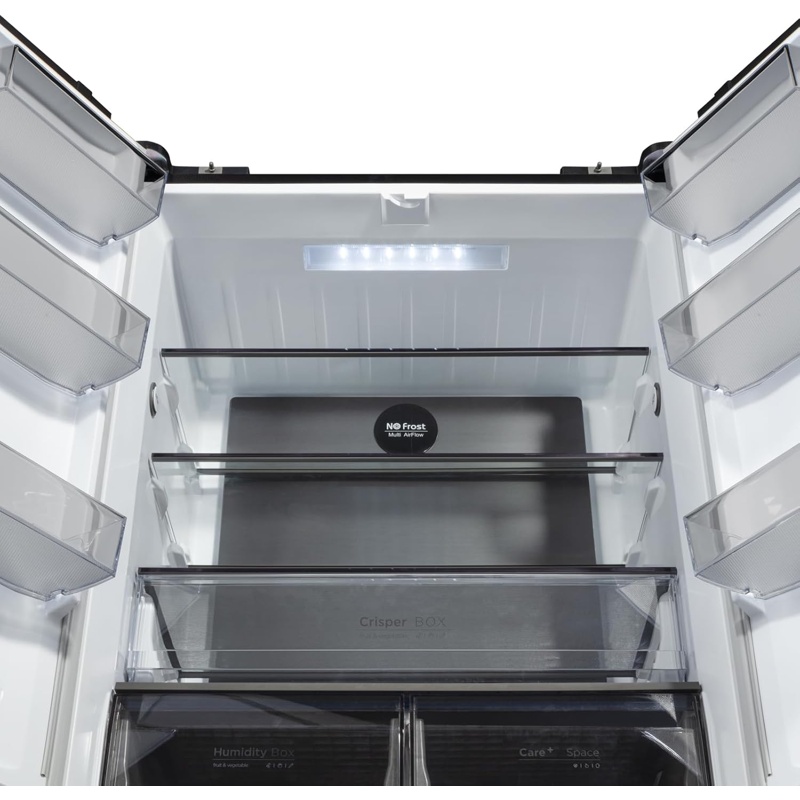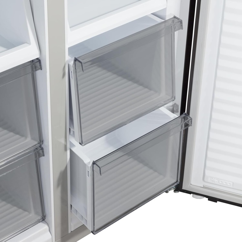 El frigorífico americano CHiQ CCD415NEI4E tiene una capacidad total de 415 litros y un tamaño de 182 cm de altura y 63 cm de ancho. Este modelo cuenta con tecnología inverter que permite un funcionamiento eficiente en el consumo energético, clasificándose en la Clase E. La distribución interna está diseñada para optimizar el espacio, incluyendo estantes ajustables y compartimentos para organizar alimentos. Cuenta con un sistema de refrigeración que mantiene temperaturas adecuadas en todo su interior, así como un compresor que regula de manera automática la potencia necesaria en función de la carga de alimentos. Este frigorífico incluye un sistema de iluminación LED que proporciona visibilidad en su interior. Tiene un dispensador de agua y hielo en la puerta, con acceso conveniente. Su sistema de Amortiguación asegura el cierre suave de las puertas. Este modelo está fabricado con materiales que permiten la facilidad de limpieza y mantenimiento. Además, tiene un nivel de ruido designado en su ficha técnica que indica el funcionamiento sonoro del aparato. El CHiQ CCD415NEI4E es un electrodoméstico diseñado para ser incorporado en diversas configuraciones de espacios de cocina.