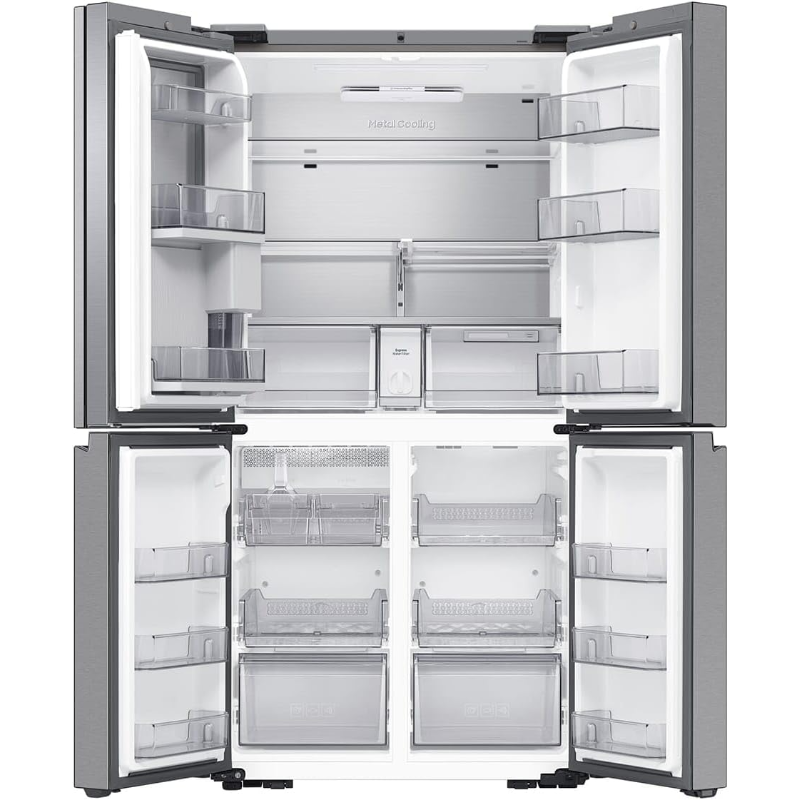 El frigorífico Combi Samsung RF65DG9H0ESREF tiene una capacidad total de 636 litros. Su diseño incluye un sistema de refrigeración No Frost que evita la acumulación de escarcha, facilitando el mantenimiento. Dispone de varios compartimentos para el almacenamiento de alimentos, incluyendo estantes ajustables de vidrio templado, un cajón para frutas y verduras, y una bandeja para carnes y pescados. El modelo cuenta con un dispensador de agua en la puerta y una función de control de temperatura digital. Los materiales utilizados en su construcción son acero inoxidable y plástico de alta resistencia. La unidad está equipada con iluminación LED, que proporciona una visibilidad adecuada en el interior. Además, el frigorífico presenta una clasificación energética de clase E, indicando su eficiencia en el consumo de energía. Este electrodoméstico puede ser instalado en diferentes configuraciones de cocina gracias a sus dimensiones estándar. Se recomienda mantener el aparato en un ambiente seco y ventilado para asegurar un funcionamiento adecuado. El frigorífico está diseñado para ser compatible con diferentes sistemas de instalación, según las necesidades del usuario.