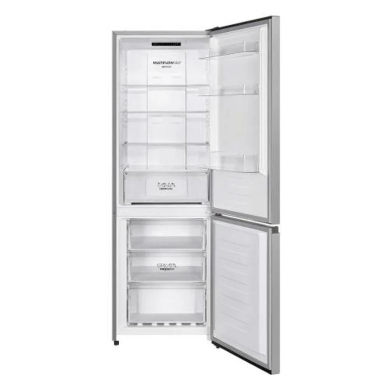 El frigorífico combinado Corberó CCHS18064X tiene una altura de 179 cm y una capacidad total de 292 litros. Su clasificación energética es E, lo que implica un consumo de energía específico que cumple con las normativas establecidas. Este modelo cuenta con un sistema de refrigeración que incluye una sección de refrigerador y otra de congelador, que permite la conservación de alimentos a diferentes temperaturas. Dispone de estantes ajustables en el interior del refrigerador y cajones para frutas y verduras, facilitando la organización de los alimentos. El congelador tiene una capacidad de almacenamiento dedicada y es capaz de congelar productos a temperaturas bajas de forma continua. El diseño del aparato permite un acceso fácil a los compartimentos, y su instalación es sencilla, ya que incluye las instrucciones necesarias. Además, cuenta con un sistema de cierre que garantiza el mantenimiento de la temperatura interna al cerrar la puerta. Este frigorífico está fabricado con materiales que cumplen con las normativas de seguridad y sostenibilidad. La conectividad eléctrica requiere un voltaje estándar, lo que lo hace compatible con la mayoría de las instalaciones eléctricas residenciales.
