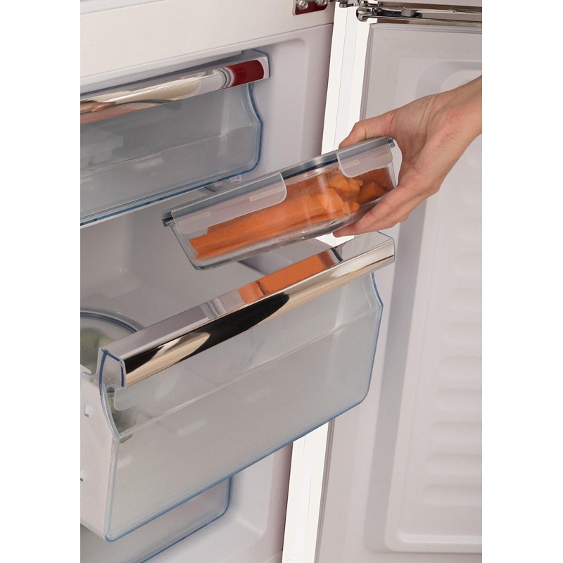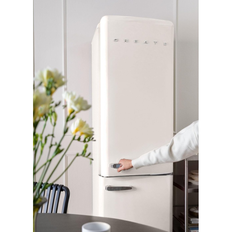 El frigorífico combinado CREATE FRIDGE STYLANCE tiene una capacidad de 244 litros y cuenta con una clasificación energética E. Su estructura incluye un compartimento de refrigeración y un compartimento de congelación, permitiendo el almacenamiento de diversos alimentos. El sistema de refrigeración es estático, lo que significa que la temperatura se distribuye de manera uniforme en el interior. El frigorífico dispone de estantes ajustables que facilitan la organización del espacio interior. Además, cuenta con un cajón específico para frutas y verduras, que optimiza la conservación de estos productos. El congelador tiene una capacidad de congelación suficiente para mantener la frescura de los alimentos. El sistema de cierre de las puertas garantiza que se mantenga el sellado adecuado para preservar la temperatura interna. Este modelo incluye una luz interior que permite visualizar los alimentos almacenados en condiciones de baja luminosidad. La clase de eficiencia energética es E, lo que indica el nivel de consumo eléctrico del aparato. Su diseño permite un uso eficiente del espacio, aumentando la funcionalidad en la cocina. Este frigorífico está diseñado para funcionar en un rango de temperatura ambiental específico, que favorece su funcionamiento óptimo. Se recomienda la instalación en un área bien ventilada para asegurar el rendimiento adecuado del dispositivo. La temperatura del frigorífico se puede ajustar según las necesidades del usuario. Este frigorífico combinado es un equipo que se integra en el espacio de almacenamiento de alimentos, facilitando la conservación de productos perecederos y no perecederos en un entorno controlado.