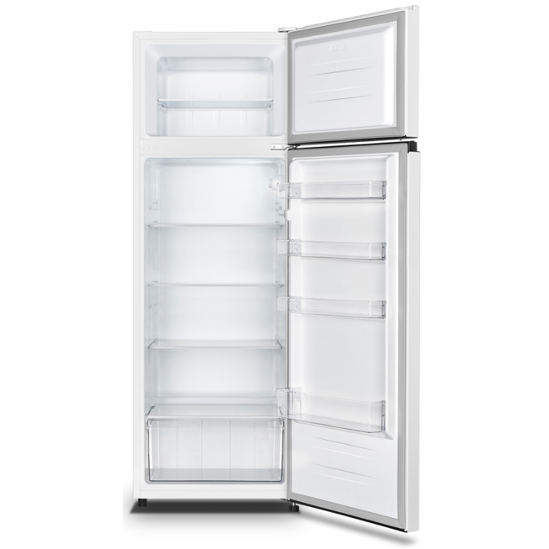 Dos Puertas KromsLine KF-1655-W Blanco Cíclico Frigorífico F presenta un diseño con dos puertas y un sistema de refrigeración cíclico. Este electrodoméstico tiene una capacidad de almacenamiento significativa, permitiendo organizar diferentes tipos de alimentos y bebidas. Está diseñado con estantes regulables que facilitan la disposición de los productos, además de contar con compartimentos en la puerta para botellas y otros artículos. El producto incluye un sistema de iluminación interna que permite visualizar el contenido con facilidad. Su funcionamiento se basa en un compresor que ajusta automáticamente la temperatura interna para mantener los alimentos a la temperatura deseada. Este frigorífico también cuenta con una clasificación energética que podría influir en el consumo eléctrico del hogar. La instalación es sencilla y requiere de conexión eléctrica estándar para su funcionamiento. Los materiales utilizados en su fabricación ofrecen una estructura robusta que sostiene el peso de los productos almacenados. Los dispositivos de control permiten ajustes en la temperatura, facilitando la adaptación a las necesidades del usuario. Este frigorífico es adecuado para el almacenamiento de alimentos perecederos y productos enlatados, manteniendo un entorno apropiado para su conservación. Al ser un aparato de refrigeración, su mantenimiento regular es recomendable para asegurar una operativa adecuada a lo largo del tiempo. La eficiencia energética y la capacidad interna son aspectos a considerar al momento de su uso.