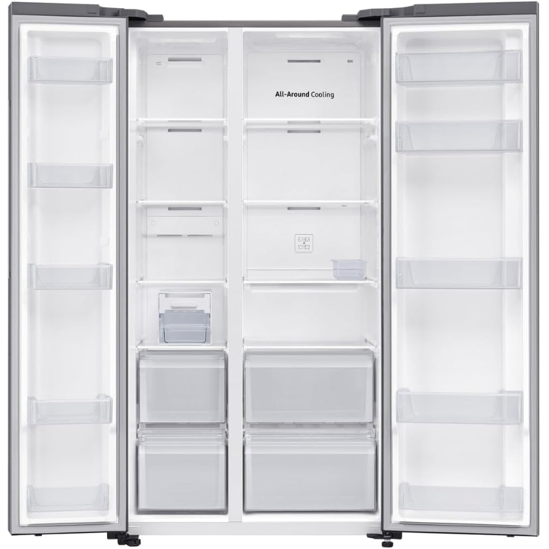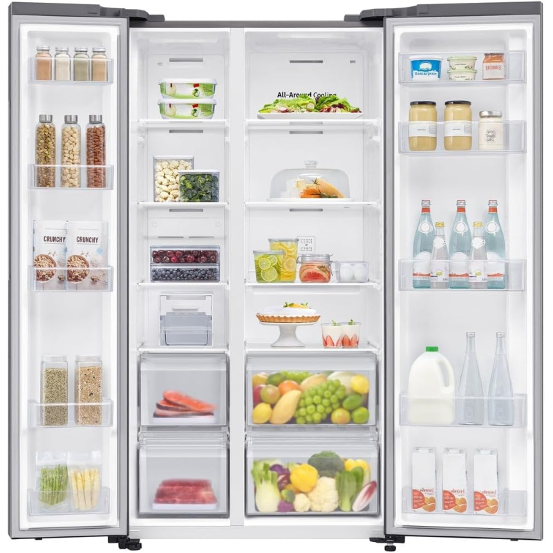 El Frigorífico Americano Samsung RS62DG5003S9/EF tiene una capacidad total de 655 litros y cuenta con tecnología No Frost, lo que impide la formación de escarcha en el interior. Este modelo tiene un sistema de frío multidimensional que asegura una distribución uniforme del aire frío. Incorpora dispensador de agua y hielo, facilitando el acceso a estas funciones sin abrir la puerta del frigorífico. Su diseño incluye estantes antideslizantes y compartimentos ajustables, permitiendo personalizar el espacio interior para almacenamiento. Además, el frigorífico cuenta con un compresor de tipo digital inverter que regula automáticamente la temperatura y la velocidad del compresor, optimizando el consumo energético. Este modelo tiene un sistema de filtración para el agua que asegura una calidad adecuada para el consumo. La puerta del frigorífico incluye tecnología de frío independiente, lo que permite un funcionamiento eficaz de la sección del congelador y la del refrigerador. El producto está fabricado con materiales de acero inoxidable, lo que proporciona una superficie fácil de limpiar. Además, el frigorífico cuenta con alarmas de puerta abierta y de mal funcionamiento, garantizando un control adicional sobre su operación. Este refrigerador es compatible con la instalación en diferentes configuraciones de cocina y se diseñó para adaptarse a normativas de eficiencia energética.