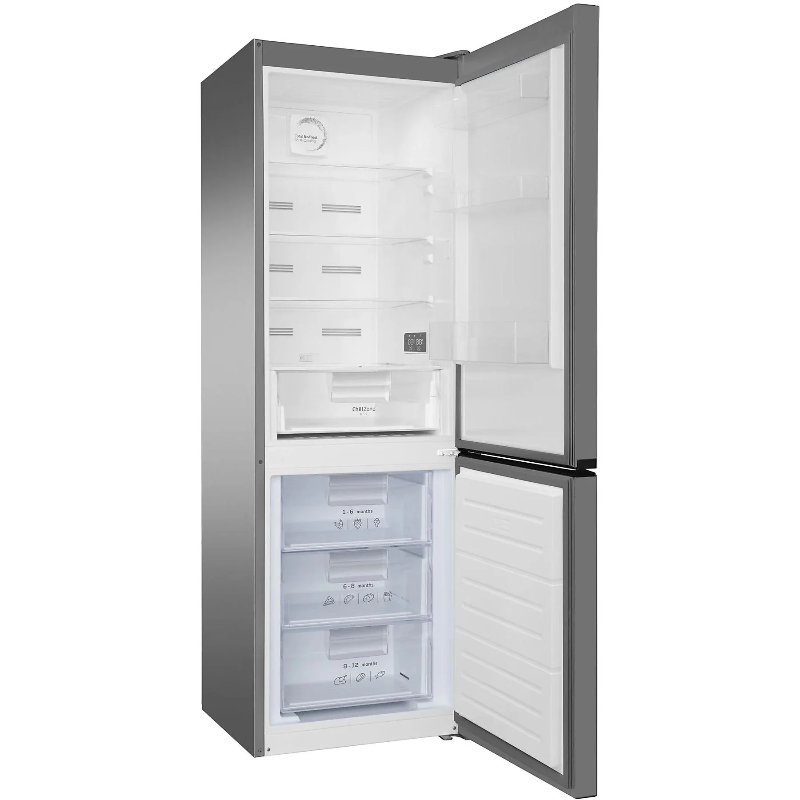 Frigorífico Combi Fagor 3FFK-6636X cuenta con una capacidad total de 285 litros, distribuidos entre el refrigerador y el congelador. Este modelo incluye tecnología No Frost, que impide la acumulación de hielo, facilitando el mantenimiento y la limpieza. La altura del aparato es de 1.86 metros, lo que permite una mayor capacidad de almacenamiento vertical. El sistema de refrigeración se basa en un compresor que opera en rangos de eficiencia energética clasificados como clase E, contribuyendo a un consumo controlado. Este frigorífico tiene diferentes estantes de cristal ajustables, lo que permite organizar los alimentos de manera flexible. Incluye también compartimentos específicos para frutas y verduras, diseñados para prolongar la frescura de los productos. Las puerta del frigorífico dispone de bandejas para almacenamiento de botellas y otros envases. El congelador tiene un sistema que permite congelar alimentos a temperaturas adecuadas de manera eficiente. La regulación de la temperatura se realiza mediante un termostato interno, asegurando condiciones óptimas de conservación. Este modelo es una opción funcional para quienes buscan una solución de almacenamiento que cumpla con las normativas de refrigeración convencionales.