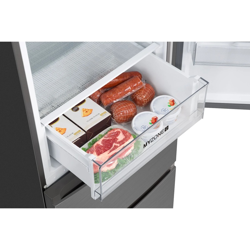 El frigorífico combinado Haier HTR3619ENMN cuenta con dimensiones de 60 cm de ancho y 190 cm de alto, y un volumen total de 348 litros. Este modelo ofrece un sistema de refrigeración que incluye compartimientos separados para los alimentos frescos y congelados. El espacio de refrigeración tiene estantes de vidrio ajustables, permitiendo una distribución eficiente de los productos. Está equipado con un compartimento de congelación que proporciona capacidad para almacenar alimentos congelados. La clasificación energética del aparato es E, lo que indica su consumo energético. Incluye una función de descongelación automática en el compartimiento de refrigeración. El sistema de control de la temperatura es manual, lo que permite ajustar la temperatura dentro de los compartimentos según las necesidades del usuario. Este dispositivo tiene una puerta reversible, lo que facilita su instalación en diferentes configuraciones de cocina. La iluminación interna se realiza a través de luces LED, proporcionando visibilidad en los estantes. El frigorífico también incorpora un sistema de ventilación que asegura una adecuada circulación del aire. Este modelo se puede integrar en cualquier cocina, cumpliendo con los estándares de capacidad y conservación de alimentos.