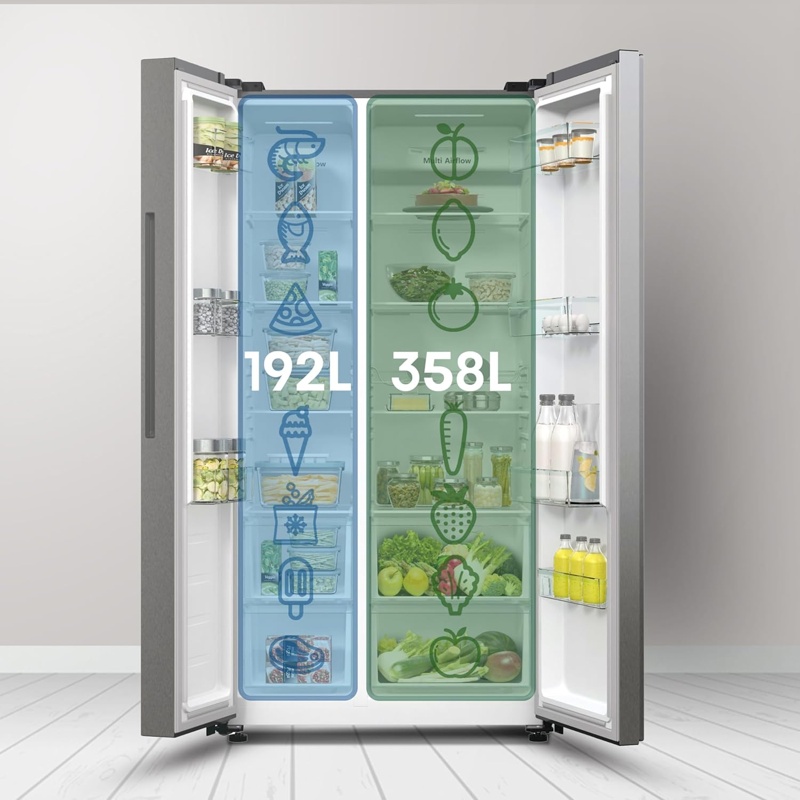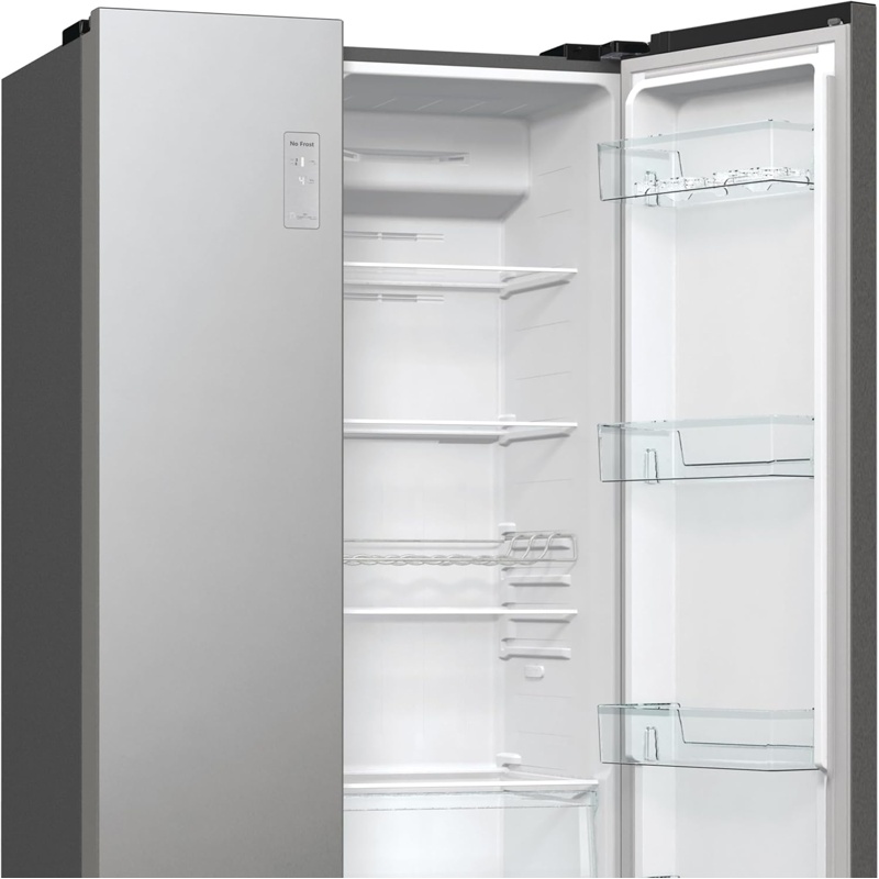 Frigorífico Hisense RS711N4ACE cuenta con una capacidad total de 547 litros, permitiendo un almacenamiento amplio. Tiene una construcción tipo Side by Side, facilitando el acceso a los alimentos y bebidas. Este modelo presenta un dispensador de agua y hielo en la puerta, ofreciendo comodidad en el servicio. Dispone de tecnología No Frost, que evita la acumulación de escarcha y facilita la limpieza del interior. La clasificación energética es E, reflejando su eficiencia en el consumo eléctrico. Incorpora estantes de vidrio templado, lo que proporciona una superficie sólida para el almacenaje de productos. Las bandejas son ajustables, permitiendo personalizar el espacio según las necesidades de almacenamiento. Además, cuenta con un compartimiento para frutas y verduras, que promueve la conservación de estos alimentos. El sistema de control de temperatura es digital, lo que permite una fácil regulación de las condiciones internas. Su sistema de refrigeración está diseñado para mantener temperaturas óptimas, favoreciendo la conservación de los alimentos. Este modelo incluye también un sistema de iluminación LED, que ofrece una visibilidad clara en el interior del frigorífico. La capacidad de congelación es adecuada para almacenar grandes cantidades de alimentos congelados.