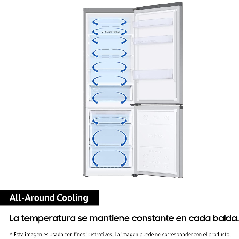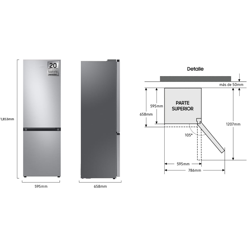 El frigorífico combinando Balay 3KIE712F cuenta con un sistema No Frost que evita la acumulación de escarcha. Sus dimensiones son 177 cm de altura y tiene una capacidad total de 260 litros. La organización interna de los compartimentos incluye estantes de cristal ajustables, porta botellas y cajones específicos para frutas y verduras. Este modelo posee un compresor silencioso que opera con un nivel sonoro de 39 dB. Incorpora un sistema de iluminación interior mediante LED, que facilita la visibilidad de los alimentos almacenados. El refrigerador está diseñado para integrarse en muebles de cocina de manera que su fachada coincida con la decoración del entorno. El funcionamiento se encuentra clasificado en la categoría E, en términos de eficiencia energética. Además, el aparato incluye control de temperatura que se puede ajustar manualmente. Las puertas son reversible, lo que permite modificar su apertura según la disposición del espacio. La instalación del producto es sencilla y no requiere herramientas adicionales. Este frigorífico es adecuado para almacenar diferentes tipos de alimentos, manteniendo condiciones de conservación estables. Su diseño funcional permite maximizar el espacio útil en la cocina y facilita el acceso a los productos almacenados. La capacidad de congelación se encuentra dentro de los estándares habituales para modelos de este tipo, ofreciendo un rendimiento a largo plazo.