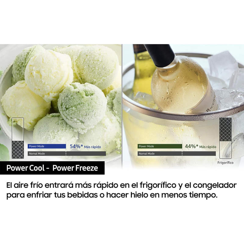 El frigorífico combi Samsung RB38C600ESA/EF tiene una capacidad total de 390 litros. Su diseño incluye un compartimento refrigerador y un compartimento congelador. La tecnología No Frost evita la acumulación de escarcha en el interior. Este modelo cuenta con varias estanterías de vidrio templado ajustables y un cajón para verduras con control de humedad. Incluye funciones de control de temperatura electrónico y una pantalla interna para la visualización de parámetros. El sistema de iluminación LED proporciona una distribución uniforme de la luz en el interior. Además, el frigorífico está equipado con un compresor inverter, que ajusta la velocidad en función de la demanda. Las características de este modelo también comprenden un dispensador de agua, así como un sistema de ventilación interior que ayuda en la circulación del aire frío. El frigorífico tiene un nivel de ruido de 35 dB y opera en la clase de eficiencia energética E. Dispone de estantes en la puerta y un espacio reservado para botellas. Las dimensiones de la unidad son adecuadas para espacios estándar en cocinas y su instalación es sencilla. El frigorífico está diseñado para uso continuo y mantiene los alimentos en condiciones de refrigeración óptimas según los parámetros establecidos.
